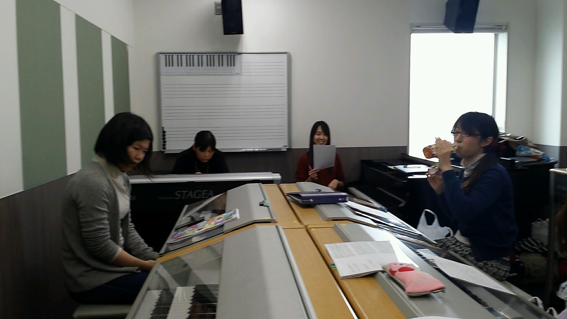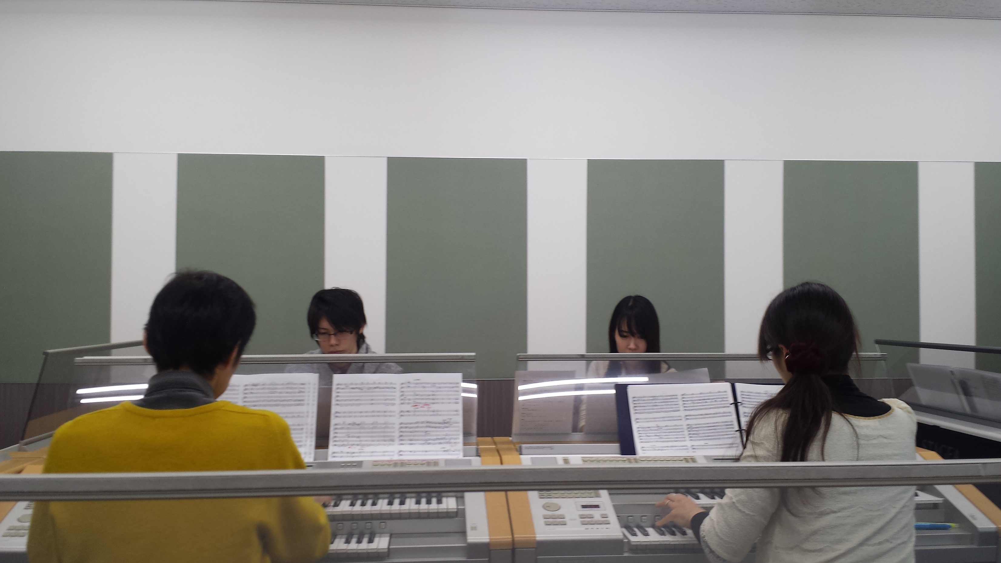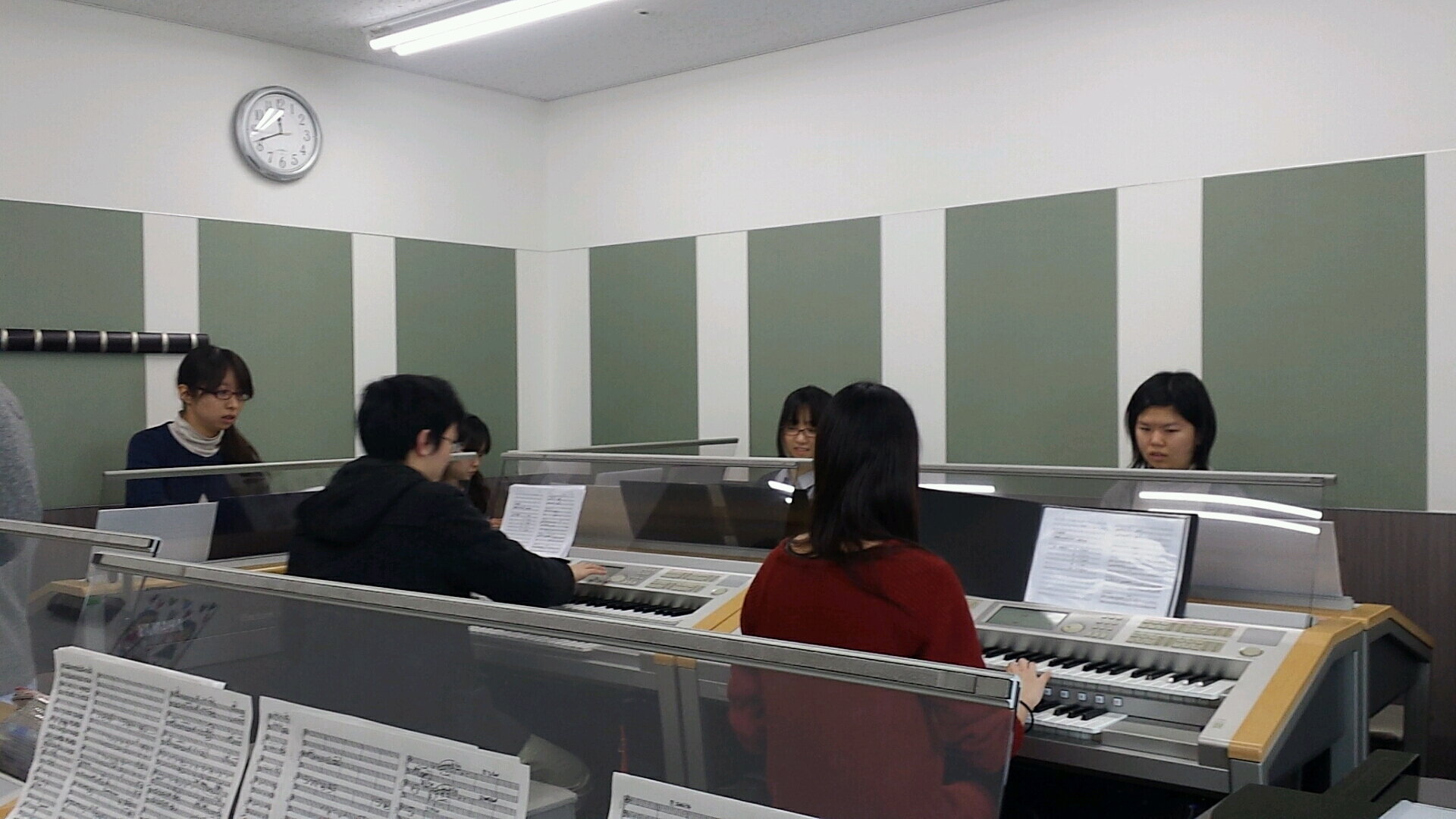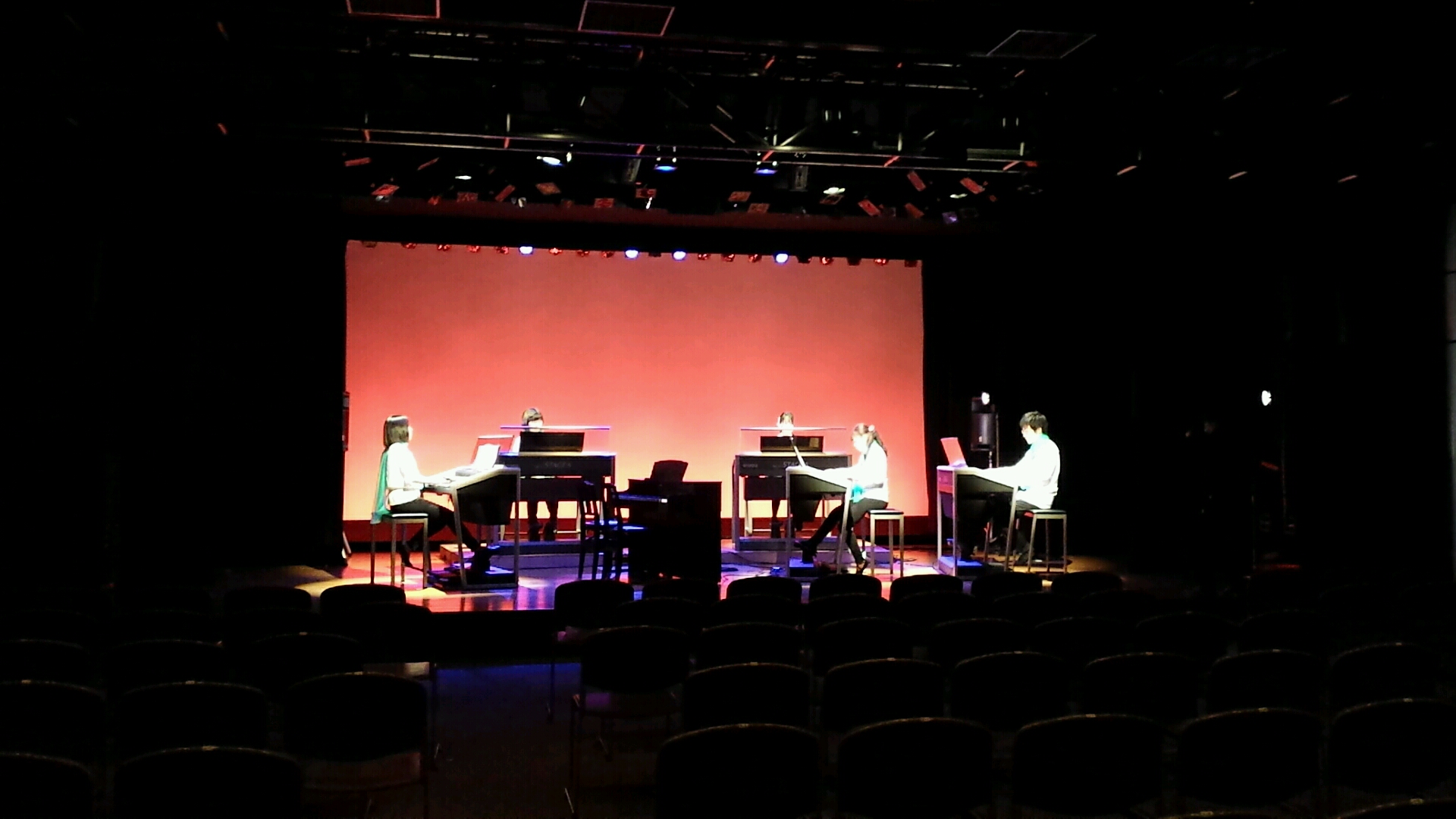前にエレクトーン3台+クラビノーバ、後ろにエレクトーン2台の配置です。